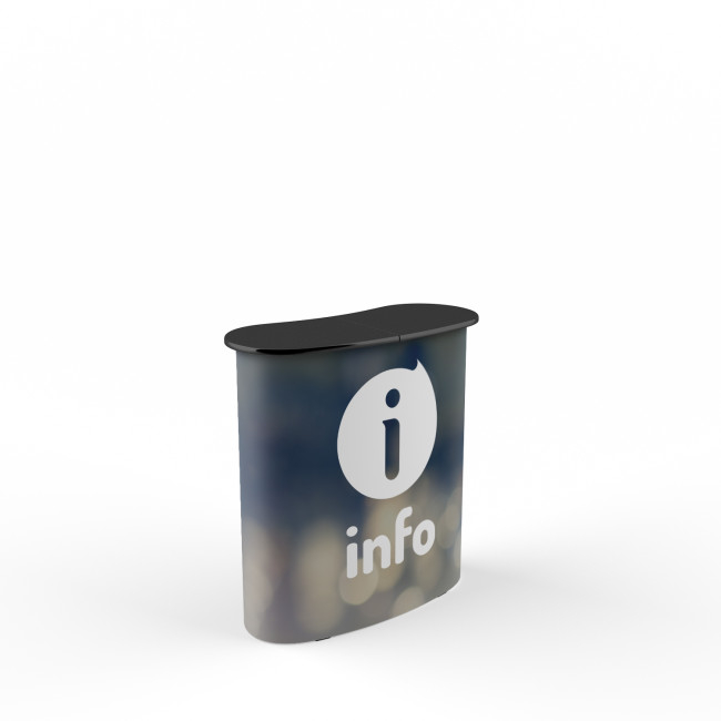 Complet personalizabil si cu un blat de lemn elegant, foarte atent finisat, pop-up desk mini 1x2 invita la dialog. Structura este de tip pop-up (spider), in consecinta, este extensibila si foarte usor de montat si transportat. Sistemul este livrat intr-o geanta de transport. Aria de utilizare: standuri expozitionale, showroom-uri, conferinte, evenimente, receptii, etc. Pozitionati pupitrul in fata unui display de tip pop-up si obtineti un spatiu in plus pentru reclama si depozitare.