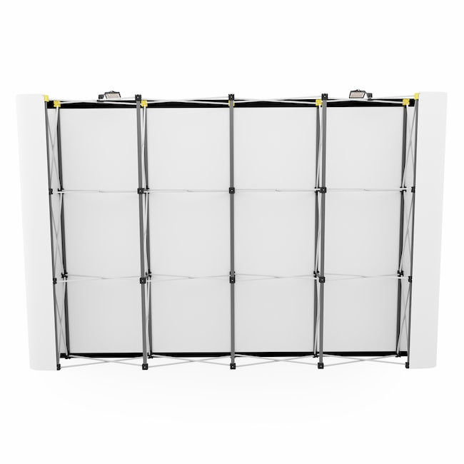 Peretele extensibil Pop-up spider drept 3x4 module se utilizeaza in spatiile mari, ocupand 30x360 cm amprenta la sol.